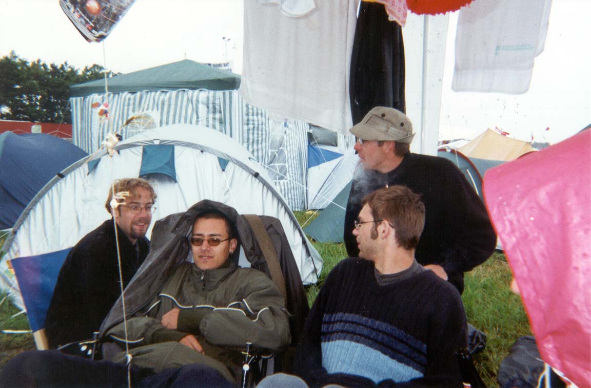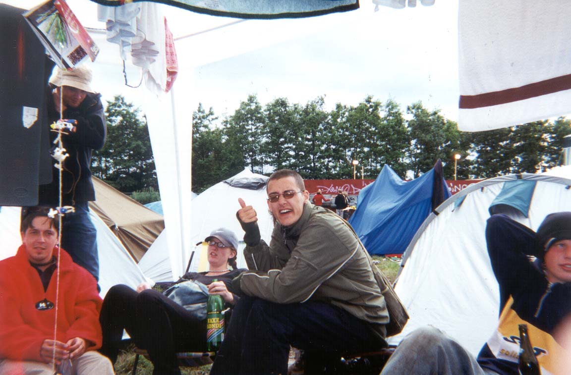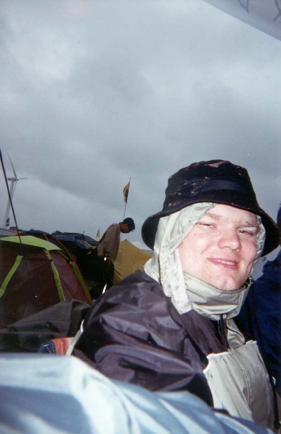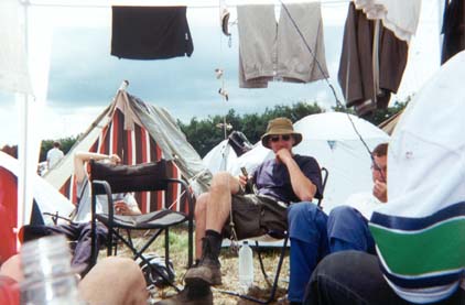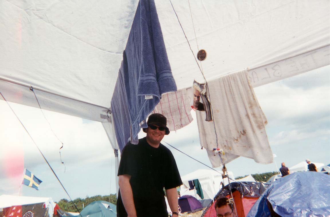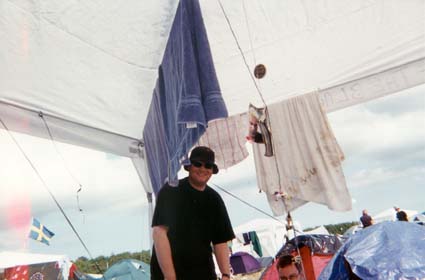 Mats gissningsvis andra dagen (dvs Torsdagen), i bakgrunden är det fantastiska tältet med inbyggd swimmingpool (dess effekt kan skådas på de hängande kläderna)