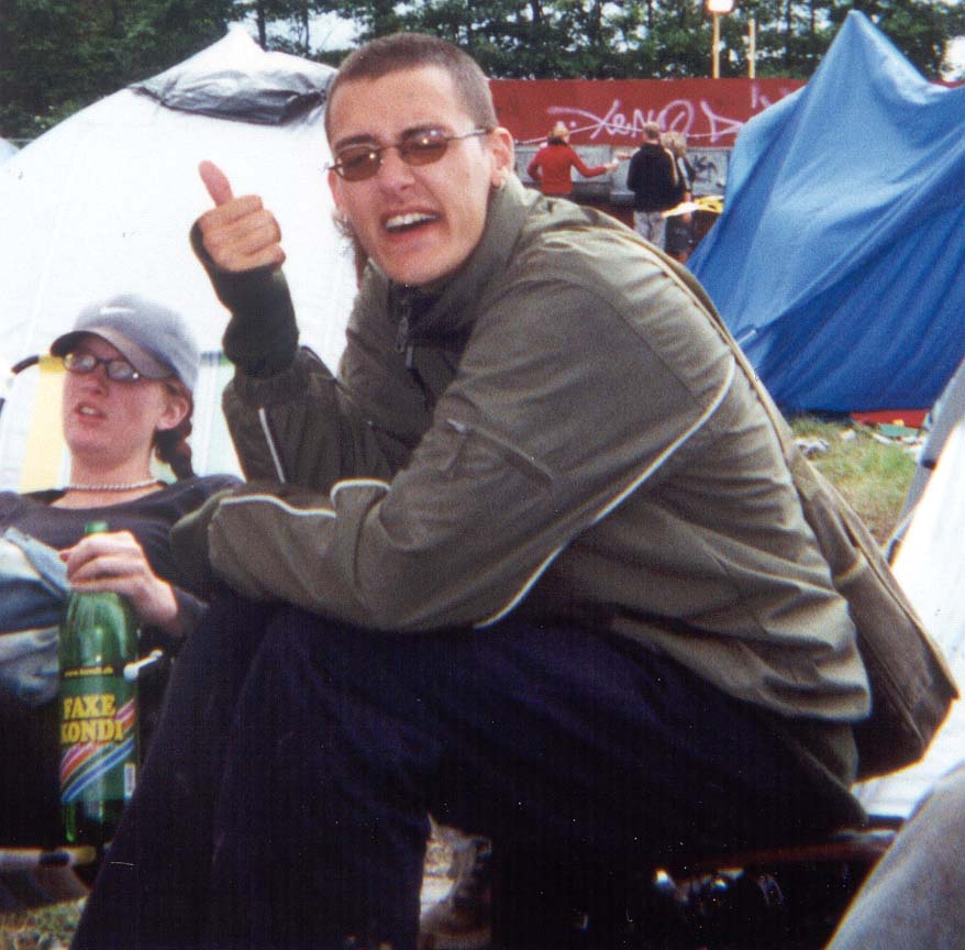 CJ å Danne första dagen i Roskilde (dvs Onsdagen, även om vi kom på Tisdagen), har precis kommit tillbaka från Roskilde stad där vi bla inhandlat den fabulösa engångskamera som använts här.