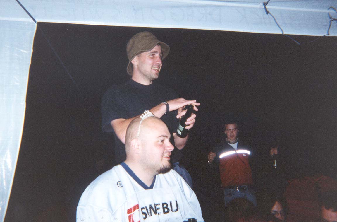 T.v. i bilden sitter Olle (även känd som Oll) som gästspelade lite under partytältet från och till.